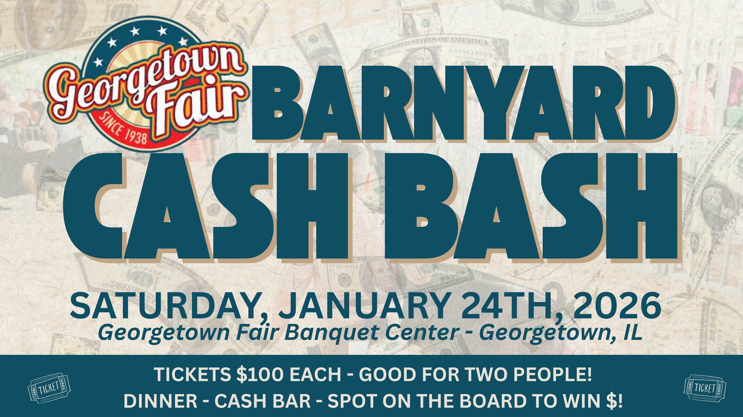 We’re excited to continue our fundraising efforts for the swine barn pen refresh at the Georgetown Fair! Join us for an evening of fun as we bring back the Cash Bash for the second year.